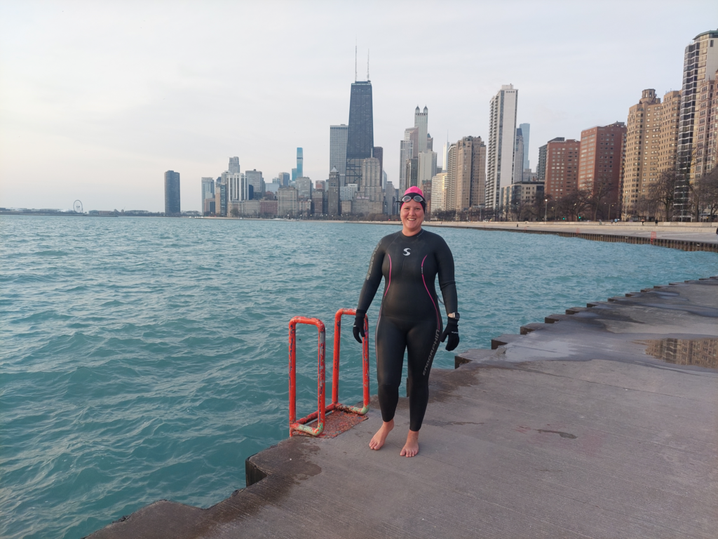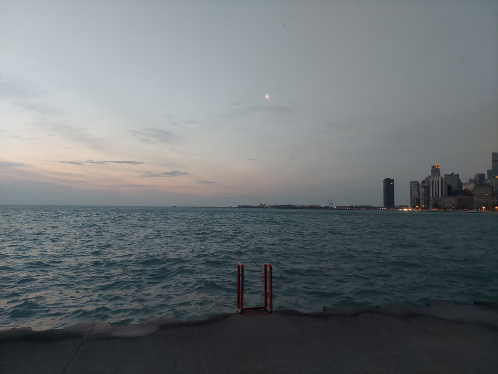 The real prize, though, was the view at 6:00 a.m. An iridescent crescent moon shone through a thin cloud layer, making the swim area feel like a science fiction scene from another planet. But only those out at the lakefront this early got to experience it. So if you slept in, you missed out (again)!